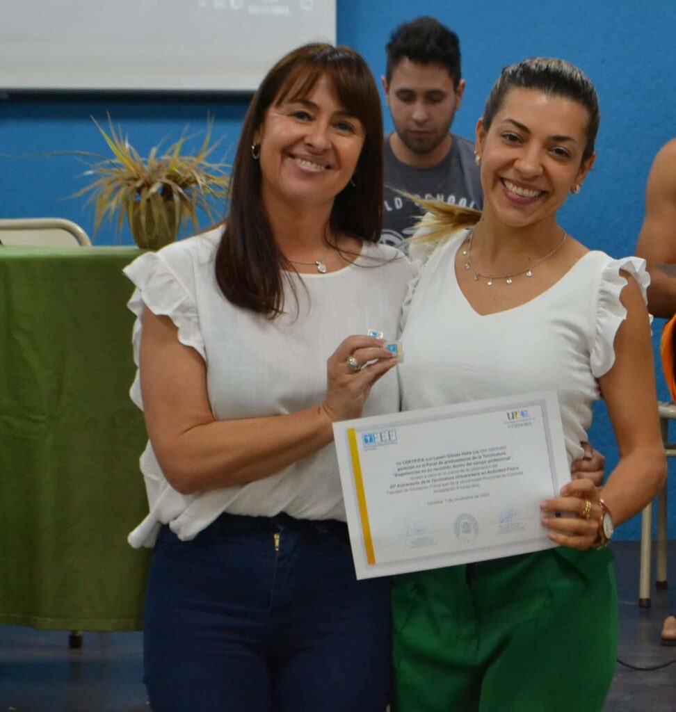 Fue convocada a disertar como referente en el 𝟐𝟎º 𝐀𝐧𝐢𝐯𝐞𝐫𝐬𝐚𝐫𝐢𝐨 𝐝𝐞 𝐥𝐚 𝐓𝐞𝐜𝐧𝐢𝐜𝐚𝐭𝐮𝐫𝐚 𝐔𝐧𝐢𝐯𝐞𝐫𝐬𝐢𝐭𝐚𝐫𝐢𝐚 𝐞𝐧 𝐀𝐜𝐭𝐢𝐯𝐢𝐝𝐚𝐝 𝐅í𝐬𝐢𝐜𝐚 en la Facultad de Educación Física Ipef de la Universidad Provincial de Córdoba, con la presencia de estudiantes, graduadas/os, docentes, ex docentes, ex coordinadoras/es y autoridades de esta casa de estudios.